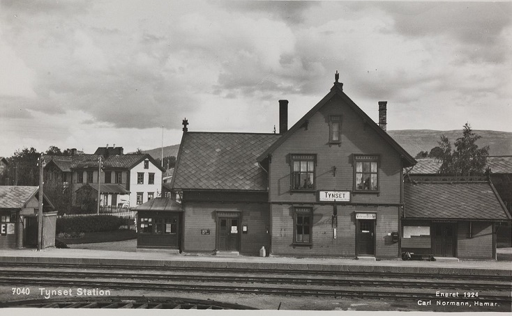 An old postcard view of Tynset Railway Station from 1924, © Carl Normann, Public Domain. [14]