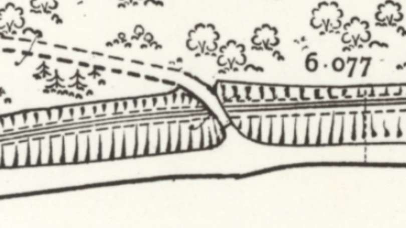 Beyond the Tamdhu Distillery, the Speyside Line curved round to the South following the river bank and crossed the burn shown on the map extract below. Vallance, writing about this location, says: “About three-quarters of a mile beyond Knockando, the railway crosses the Allt Arder, a tributary of the Spey, on a masonry bridge of three spans, one of 50 ft. and two of 40 ft. Difficulty was experienced in obtaining sound foundations for the piers of this structure, and after loose boulders and shingle had been excavated to a depth of 16 ft., piles had to be driven for a further 15ft.” [1: p6]